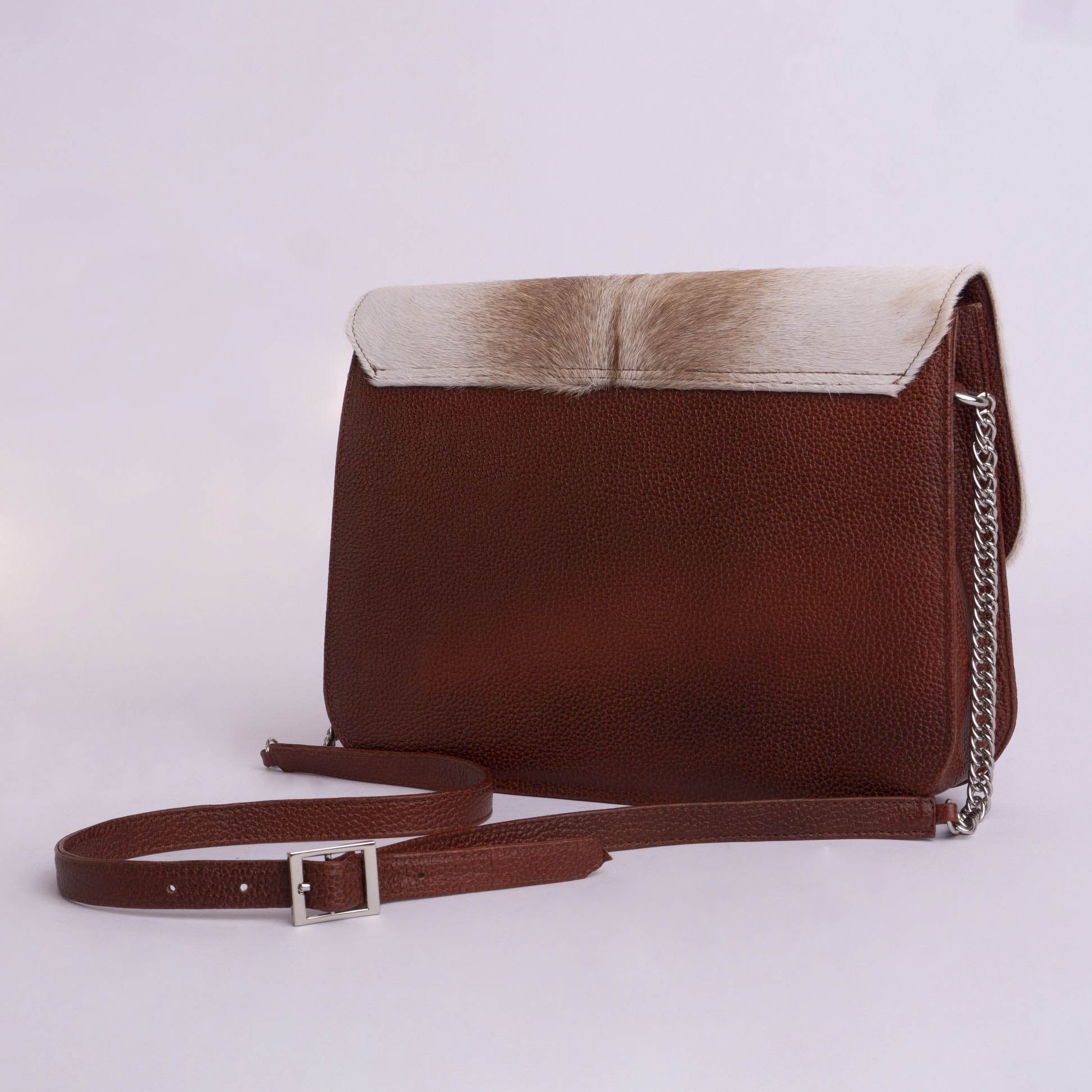 Aplique: Cuero liso y pelo vacuno
