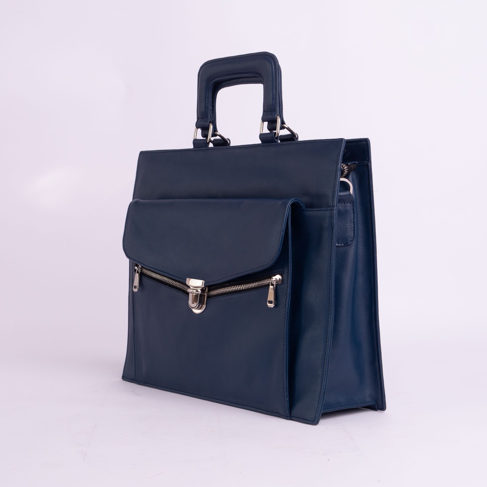 Maletín estructurado en cuero mini floater de forma rectangular , de doble funcionabilidad ( doble asa de mano y 1 asa cruzada graduable ) , 1 bolsillo exterior delantero con tapa y chapa . Posee también 1 compartimiento principal con cierre de metal , 1 bolsillo interior con cierre , 2 bolsillos internos porta celular y 1 compartimiento porta laptop.