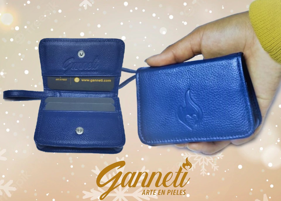 Mini cartera monedero de cuero – Azul